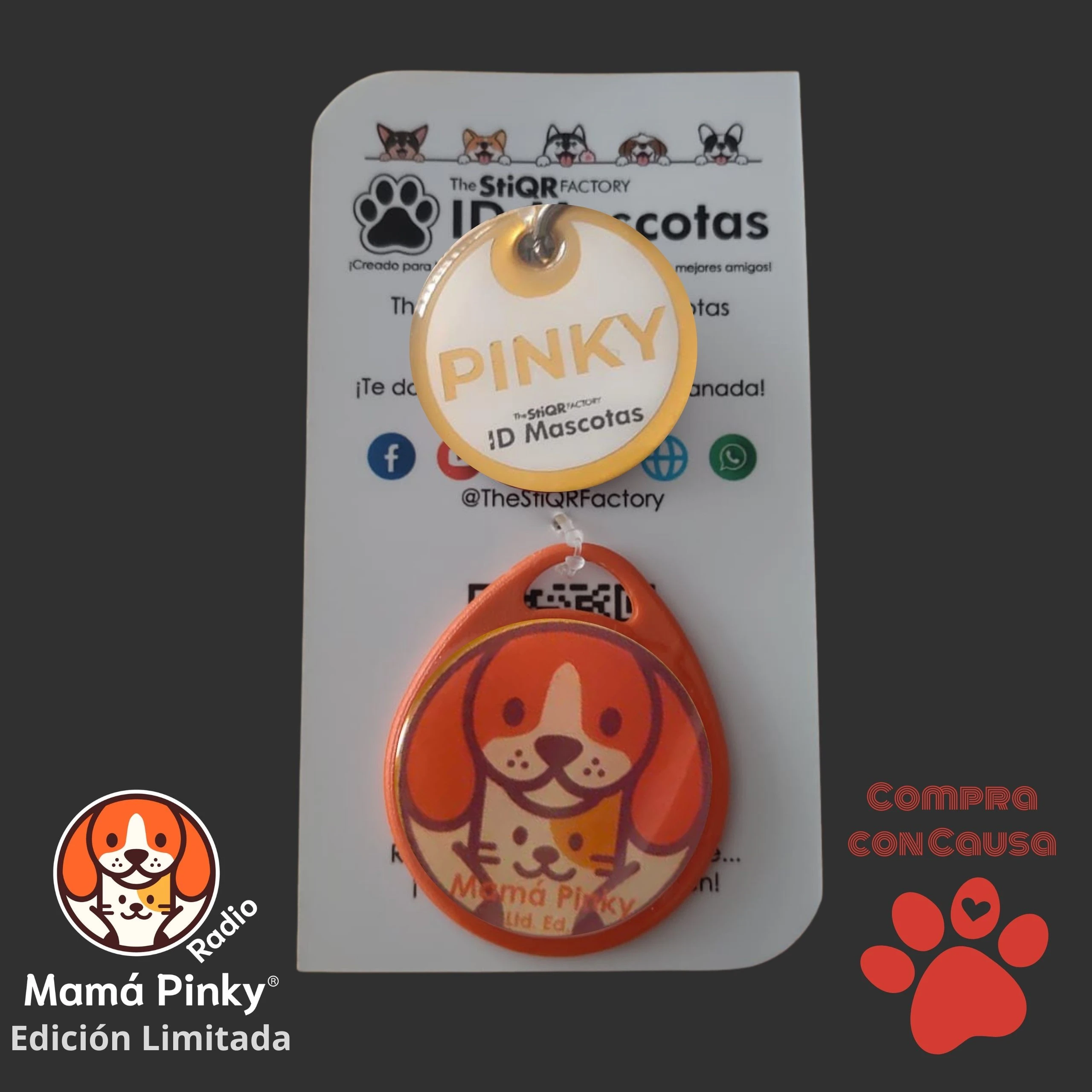 La Plaquita ID Mascotas Mamá Pinky – Edición Limitada no solo es un accesorio de identificación digital con código QR para mascotas, también representa una compra con causa. Cada unidad apoya directamente a Mamá Pinky Radio y su labor de rescate de más de 100 perritos. Con esta plaquita exclusiva, proteges a tu compañero y, al mismo tiempo, contribuyes al bienestar, la salud y la alimentación de quienes más lo necesitan. 🐾